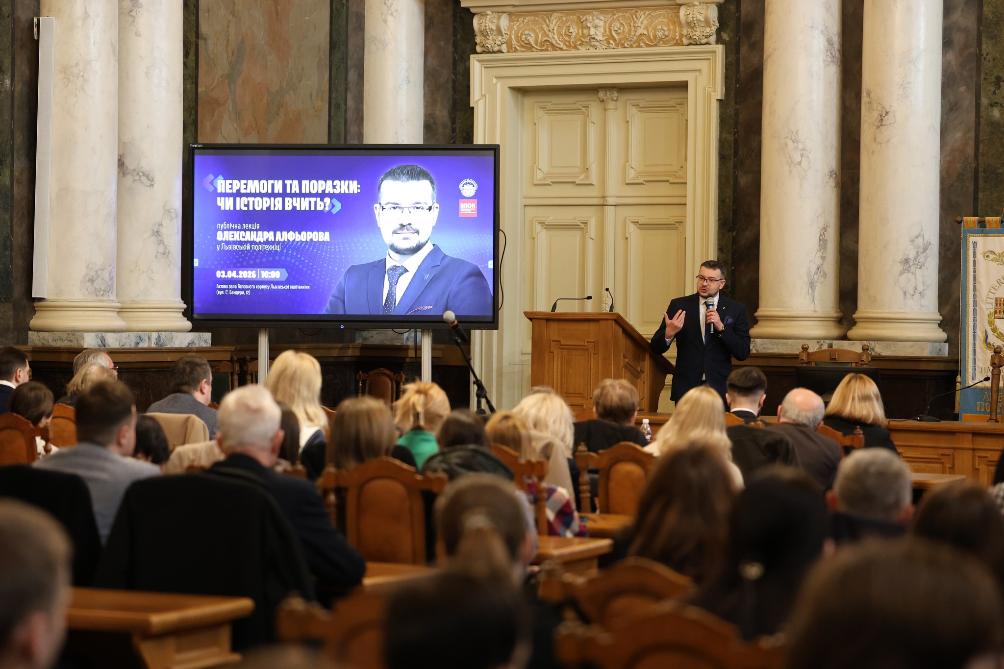 3 квітня 2026 р. з ініціативи Наталії Шаховської, ректорки Львівської політехніки, МІОК запросив академічну спільноту Університету та широку громадськість на публічну лекцію Олександра Алфьорова «Перемоги та поразки: чи історія вчить?», щоби спільно з відомим науковцем поміркувати про історію та її вплив на сьогодення, проаналізувати уроки минувшини в контексті сучасної московсько-української війни та віднайти й утвердити ціннісні точки опори для повоєнної України.