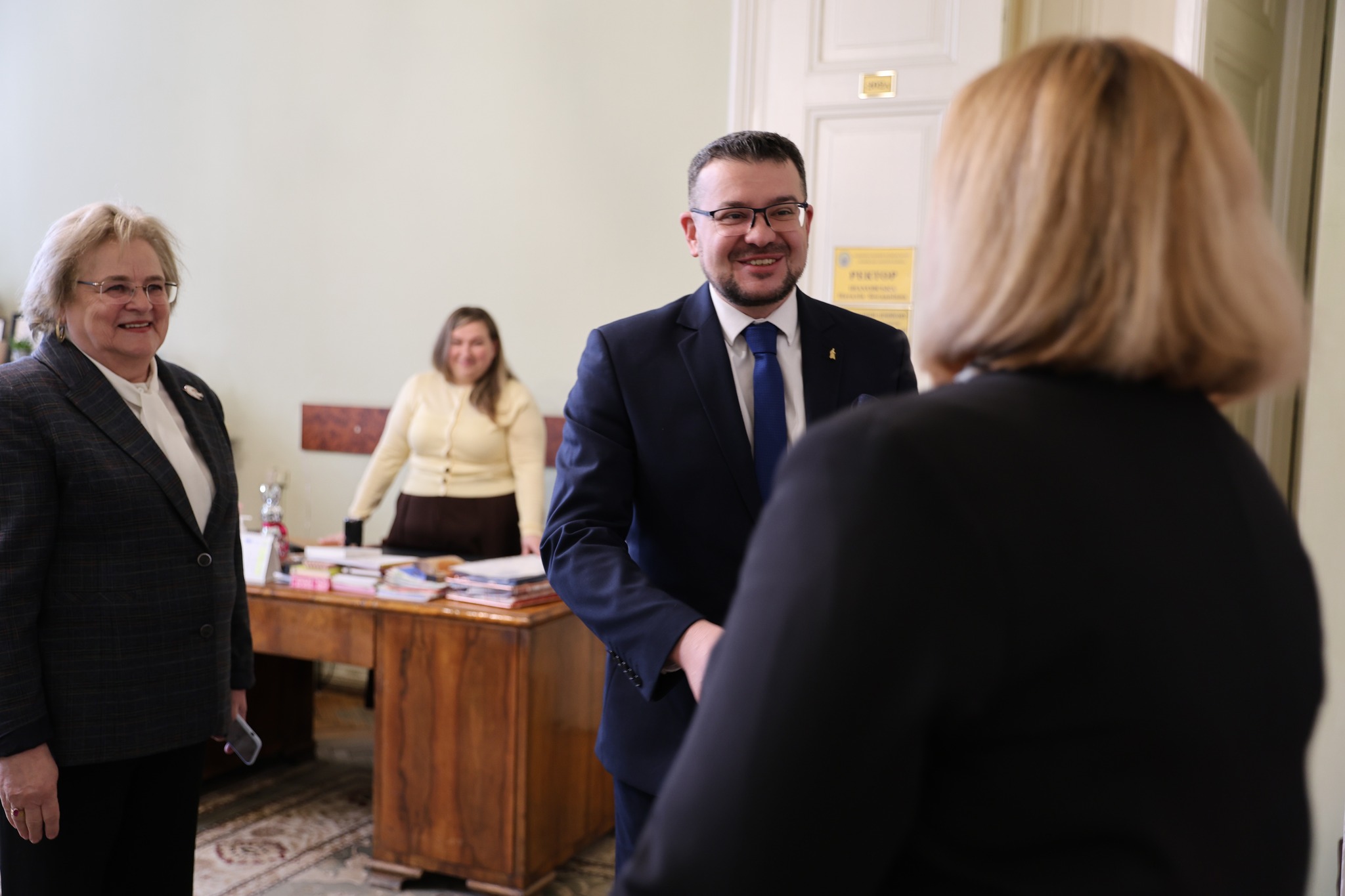 Перед початком лекції відбулася зустріч із Наталією Шаховською, до якої долучилися проректори Микола Логойда та Ірина Яремчук. У розмові взяли також участь Ірина Ключковська, директорка МІОКу, та Андрій Яців, заступник директора МІОКу.